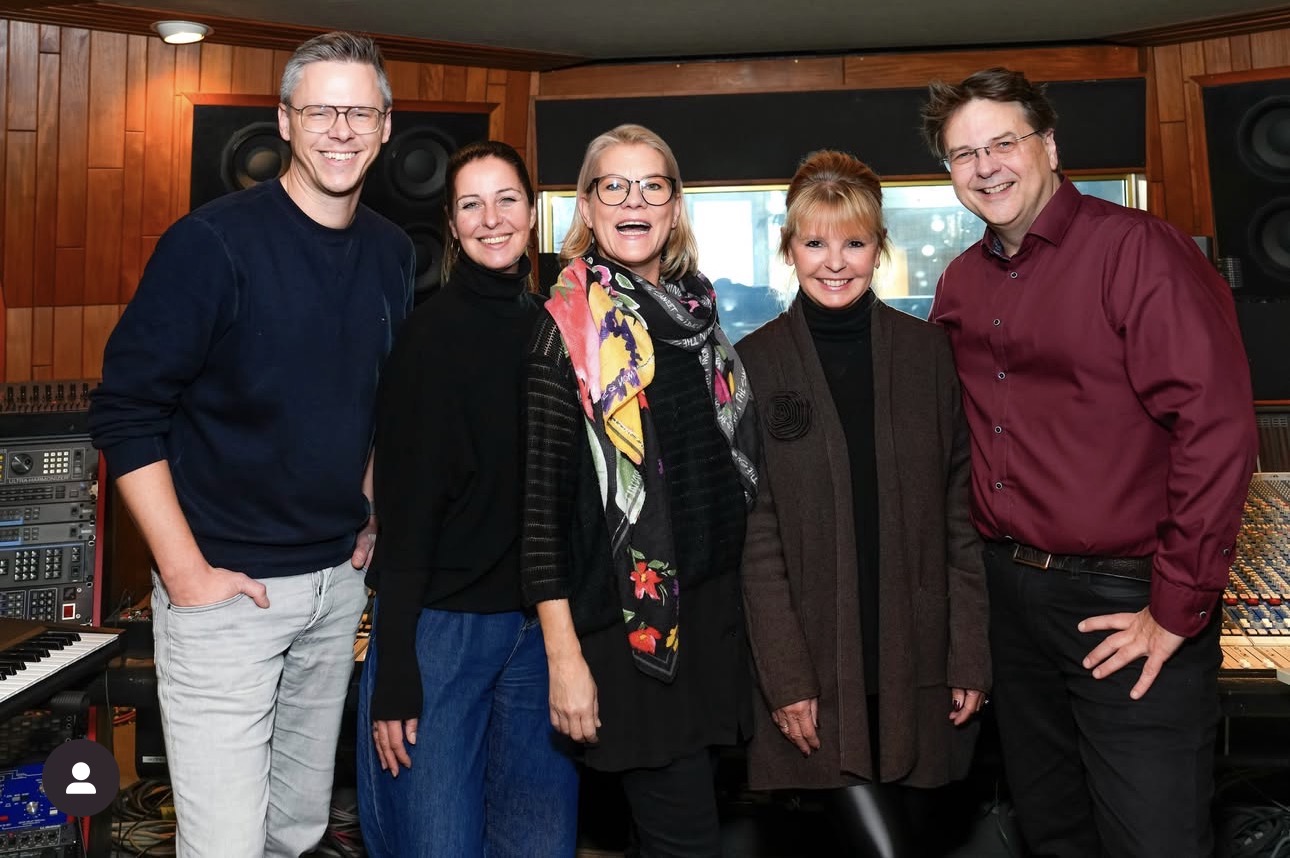 Zur Vertragsunterzeichnung trafen sich in den Hansa Studios: Christopher Gronau (Senior A&R LUCILE-MEISEL), Ina Wiens (Copyright-/Creative Manager LUCILE-MEISEL), Anja Krabbe, Kirsten Meisel (Geschäftsführerin LUCILE-MEISEL) und Marcus Zander (Verlagsleiter LUCILE-MEISEL) – Foto: © Marc Vorwerk